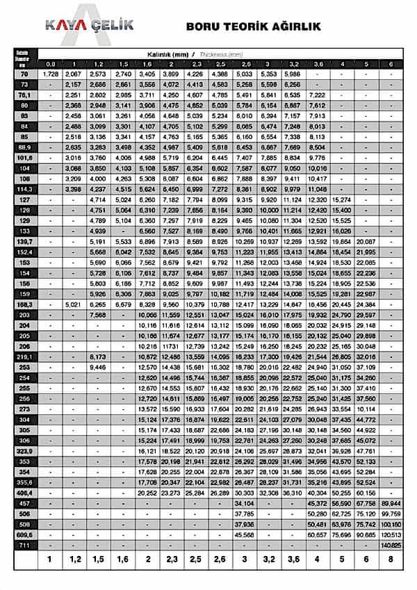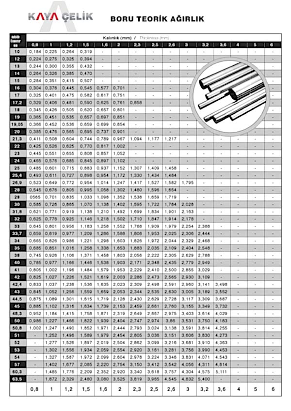 | � | | | | | � |  |  | | | | | � | Paslanmaz �elik Boru Paslanmaz borular ile ilgili t�m ebat ve �l��lerde boru bulabilece�iniz gibi, gerekti�inde �zel �retim yaparak istenilen ebat ve �l��lerde �retim yapt�rabilmekteyiz. Paslanmaz boru imalat a�amas�nda kullan�lan paslanmaz �elik malzeme ile yap�lan imalat, karbon ve az ala��ml� �eliklerden daha farkl� �zellikler ta��rmaktad�r. Bu farkl�l�k, genellikle malzemelerin akma dayan�kl�l��� ile pekle�me davran��lar�n�n farkl�, farkl� olmas�ndan kaynaklanabilmektedir. Unutulmamas� gereken bir hususta �udur ki, Paslanmaz �elikten imal edilen paslanmaz borular da en �nemli etken akma ve �ekme dayan�kl�l���, s�rekli peki�me �zelli�i ve kesit daralmas�d�r. Paslanmaz Borulara �ekil verebilmek i�in ortak �zellik olarak ��yle s�ralamak m�mk�nd�r. 1- Paslanmaz �elikten imal edilen paslanmaz borular�n dayan�kl�l���, sertli�i ve s�rekli�i genellikle ��� �ok daha y�ksek olmal�d�r. 2- Daha h�zl� pekle�irler (yani �ekil verdik�e dayan�ma s�reci h�zla artar) 3- Paslanmaz borular�n imalat� sonunda par�a y�zeyinde korozyona kar�� koruyucu bir oksit filmine �� sahip olmas� gerekti�i dikkate kesinlikle al�nmal�d�r, aksi halde istenilen kalite elde �� edilememektedir. Bilindi�i gibi Paslanmaz boru dayan�kl�l��� ve dolay�s�yla kullan�m �mr� en uzun �m�rl� paslanmaz �r�nlerinden biridir, Paslanmaz borular�n kullan�c�lar� iyi bilmektedirler ki kaliteden �d�n verilerek �retilen paslanmaz borular ilerleyen zamanlarda mutlaka sorun ��karmaktad�rlar. Paslanmaz borunun baz� kullan�m alanlar� �unlard�r: Petrol Boru Hatlar�,Temel Kaz�klar�,Su Da��t�m Hatlar�, End�striyel Boru A�lar�, �elik Yap�lar, Rafineriler, Do�algaz Boru Hatlar�, Bas�n�l� Hava Hatlar� ve, �zel Ama�l� Kullan�mlard�r. ����� �����  ? Paslanmaz Boru �l��leri �� � | � | | � | � | � |
